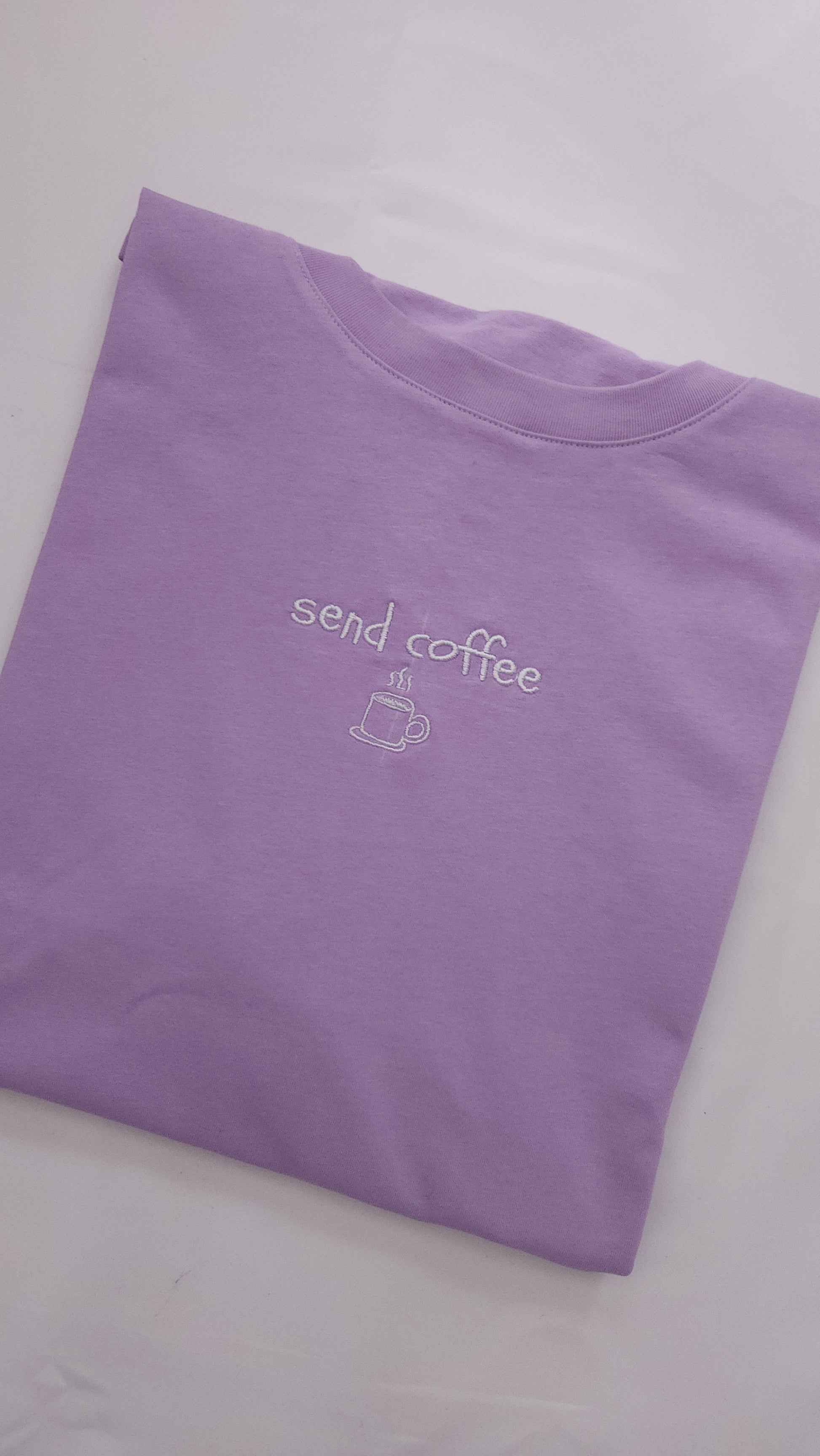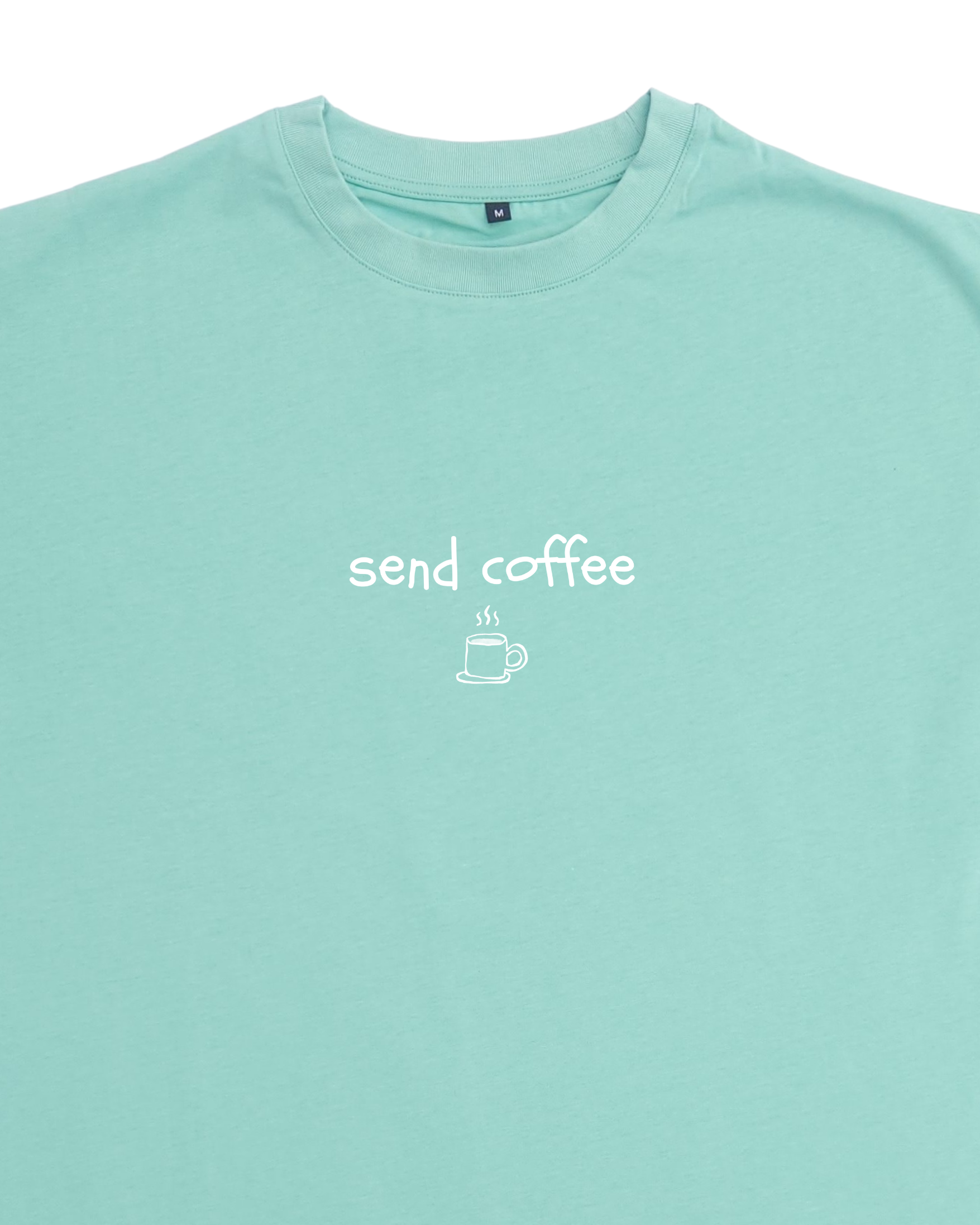 Our limited edition 'send coffee' embroidered t-shirts are the perfect way to send the right message. With a small white embroidered design on the front, these are available on all 4 coloured oversized tee's.
