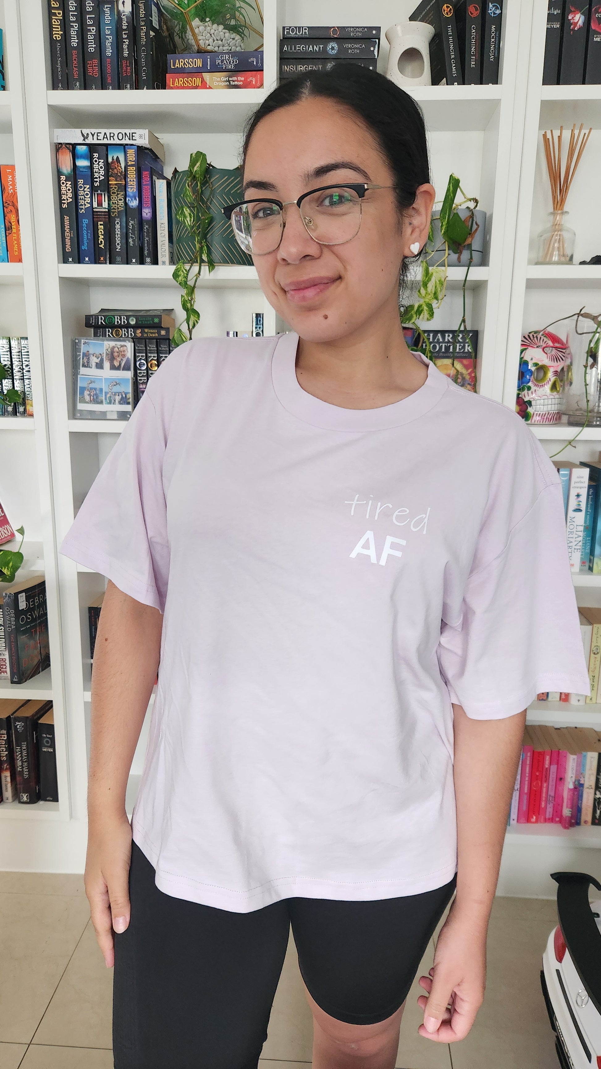 Our bestseller tiredAF pocket print design is the #1 relatable tee for every mum. From the mental load, sleep deprivation, overstimulation and doom scrolling, we are tiredAF. At least now, you can let those around you know, today is not the day.